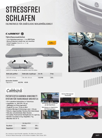 • Für zusätzliche Schlafplätze im Fahrerhaus