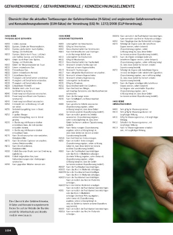und Kennzeichnungselemente (EUH-Sätze) der Verordnung (EG) Nr. 1272/2008 (CLP-Verordnung).