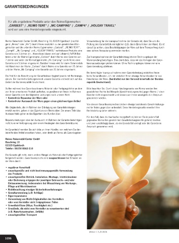 7 Jahren und unter der Reimo-Eigenmarke „Mc Camping“ durch Reimo eine Warensendung beizufügen. Dies dient dazu, dass wir das Vorliegen der Garan-