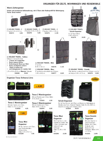 ORGANIZER FÜR ZELTE, WOHNWAGEN UND REISEMOBILE
