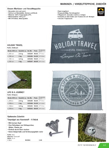 MARKISEN- / VORZELTTEPPICHE, ZUBEHÖR