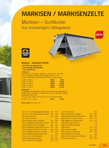 Reimo Tent Technology Markisenvorzelte 126 – 127 Info Thule Markisen 163
