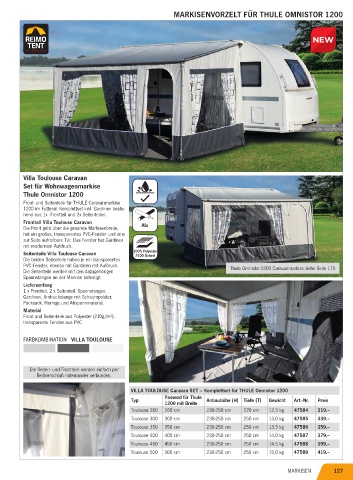 PVC-Fenster, ebenso mit Gardinen mit Aufdruck. Thule Omnistor 1200 Caravanmarkise siehe Seite 175