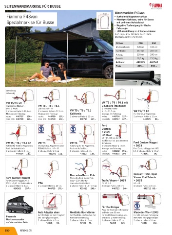 Zur Montage auf dem Tragrohr Für Westfalia-Hochdächer mit Für die Marki sen mon tage wer- Für Vito kompakt mit original