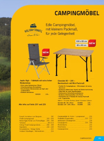 Holiday Travel Campingprodukte 208 – 209 Picknicktische 231