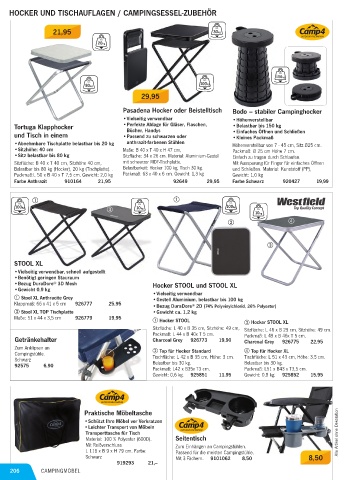 HOCKER UND TISCHAUFLAGEN / CAMPINGSESSEL-ZUBEHÖR