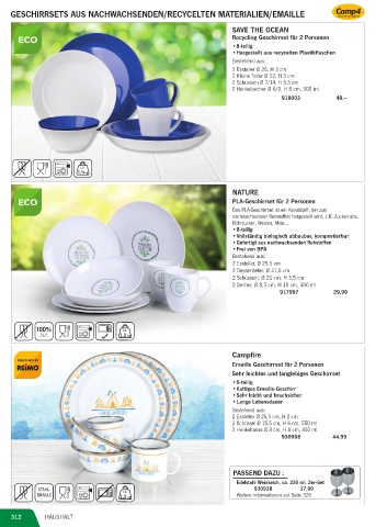 GESCHIRRSETS AUS NACHWACHSENDEN/RECYCELTEN MATERIALIEN/EMAILLE