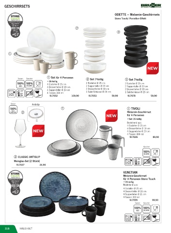 70° 4 Suppenteller Ø 23 cm 2 Dessertteller Ø 19 cm 2 Dessertteller Ø 19 cm