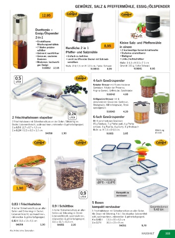 2 Frischhalteboxen mit Schnellverschluss an den Seiten. Silikonring im Mit 6 verschiedenen Gewürzen: