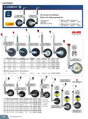 Größe mm Rohr-Ø Belastg. Felge Bereifung Gew. Art.-Nr. Preis d Vollauto-