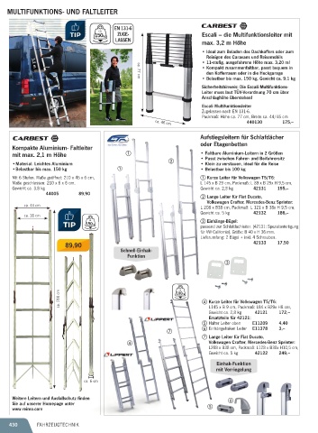 mit max. 2,1 m Höhe a • Faltbare Aluminium-Leitern in 2 Größen