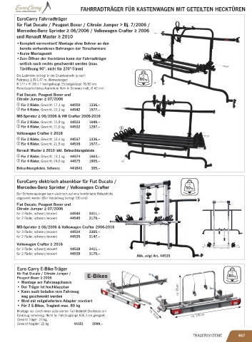 FAHRRADTRÄGER FÜR KASTENWAGEN MIT GETEILTEN HECKTÜREN