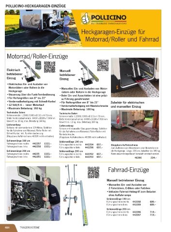 Führungsschiene links 442258 1333,-- Führungsschiene links 442256 657,-- Zum Auff ahren von Motorrädern oder Motorrollern in