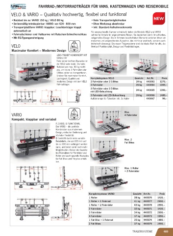 • Nutzlast bis zu: VARIO 150 kg / VELO 80 kg • Viele Transportmöglichkeiten