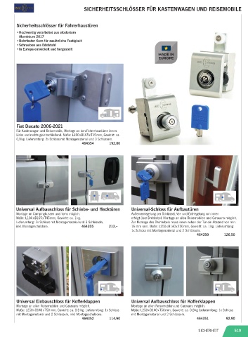 SICHERHEITSSCHLÖSSER FÜR KASTENWAGEN UND REISEMOBILE