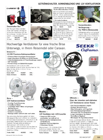 GETRÄNKEHALTER, SONNENBLENDE UND 12V VENTILATOREN