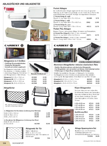 Ablagenetz M, B 27 x H 26,5 cm 461946 14,95 Ablagefach S, B 33,5 x H 18,5 x T 8 cm 461942 24,95
