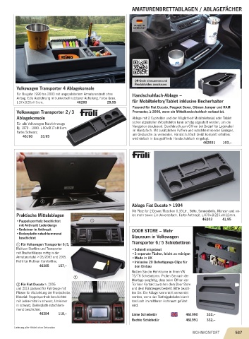 Volkswagen Transporter 2 / 3 Promaster, ≥ 2006, wenn ein Mittelhandschuhfach verbaut ist.