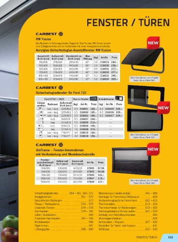 Spezialfenster/Bullaugen 573 Verdunkelungssysteme Fahrerhaus 610 – 613