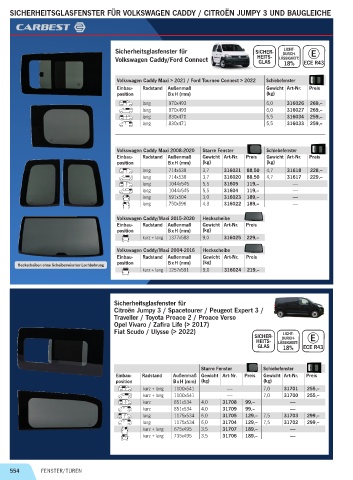 SICHERHEITSGLASFENSTER FÜR VOLKSWAGEN CADDY / CITROËN JUMPY 3 UND BAUGLEICHE