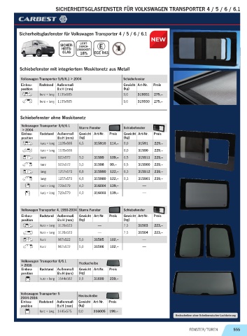 SICHERHEITSGLASFENSTER FÜR VOLKSWAGEN TRANSPORTER 4 / 5 / 6 / 6.1