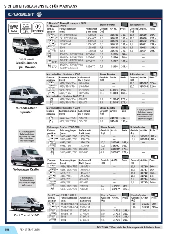 Sprinter Einbau- Fahrzeuglängen Außenmaß Gewicht Art-Nr. Preis Scheiben haben