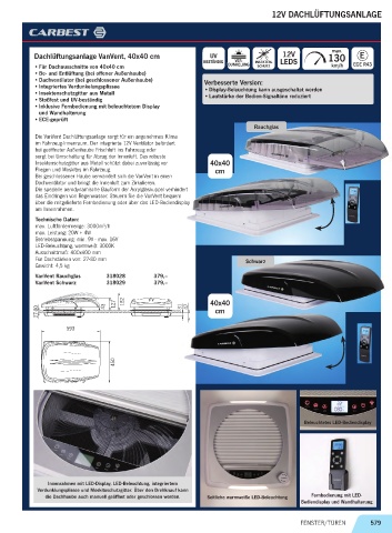 die Dachhaube auch manuell geöff net oder geschlossen werden. Fernbedienung mit LED-
