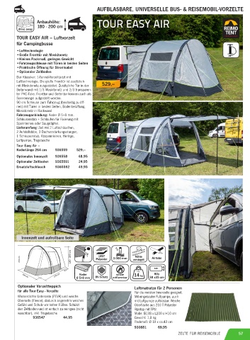 AUFBLASBARE, UNIVERSELLE BUS- & REISEMOBIL-VORZELTE