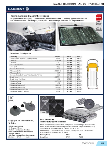 • Mit Schraubfunktion Ränder der Thermomatte heften und mit Einfassband versäubern. Saugnäpfe einsetzen, fertig.