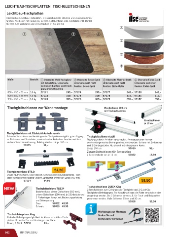 LEICHTBAU-TISCHPLATTEN, TISCHGLEITSCHIENEN