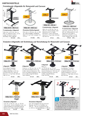 Hub 375 mm. 57116 365,-- 57113 369,-- Das Gestell arretiert eigenständig.