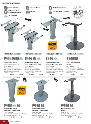 Höhenverstellbar, Drehfuß Tischplattenverschiebung