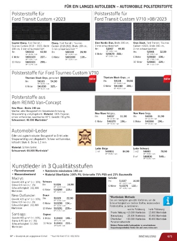 GP* = Grundpreis pro angegebener Einheit GP* = Grundpreis pro angegebener Einheit **Auch für Ford V710 >08/2023 I INNENAUSBAUNNENAUSBAU 671