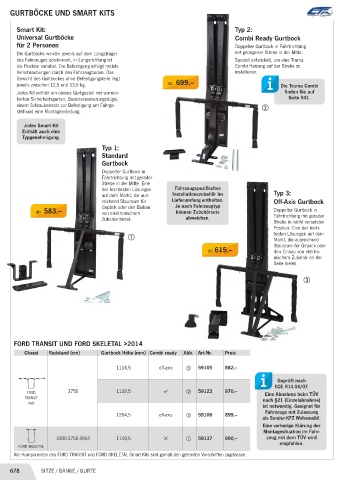 Chassi Radstand (cm) Gurtbock Höhe (mm) Combi ready Abb. Art-Nr. Preis