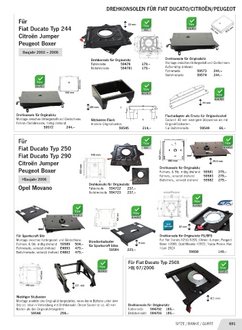 Peugeot Boxer 430 mm Drehkonsole für Originalsitz 279,--