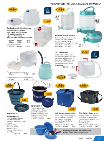 FALTKANISTER, FALTEIMER, FALTBARE SCHÜSSELN
