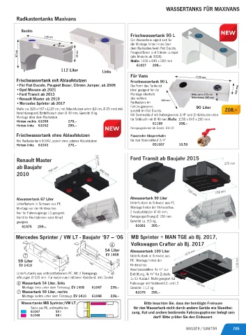 Wassertanks MB Sprinter/VW LT Bitte beachten Sie, dass der benötigte Freiraum