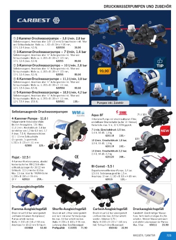 Max. 2,5 bar. Ideal für TRUMA-Boiler. 1,5-3 A. Selbstansaugend bis 1,5 m.