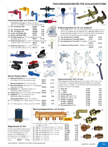 Wasserleitung. Ø 10 mm. 65027 17,60 b Durchgangsventil Kunststoff einfach E155 11,50