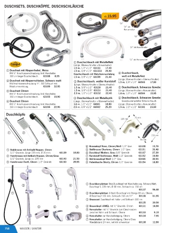 c Duschset Chrom 1,5 m, 3/8” x 3/8” 63131 21,40 (Länge, Überwurfmutter x Konusmutter)