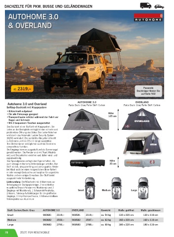 S toff: Carbon/Dach: Grau AUTOHOME 3.0 OVERLAND Gewicht Maße: geöffnet Maße: geschlossen