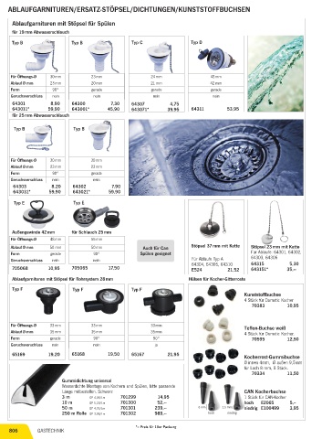 Ablauf Ø mm 50 mm 50 mm Auch für Can Stöpsel 37 mm mit Kette Stöpsel 23 mm mit Kette