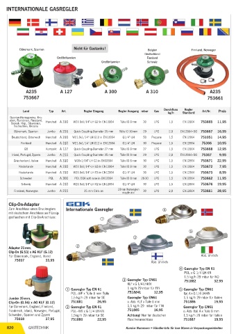 820 GASTECHNIK Kursive Nummern = Händler-Info für lose Waren in Verpackungseinheiten