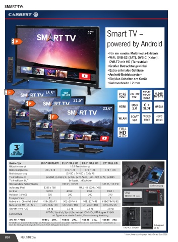 • WiFi, DVB-S2 (SAT), DVB-C (Kabel),