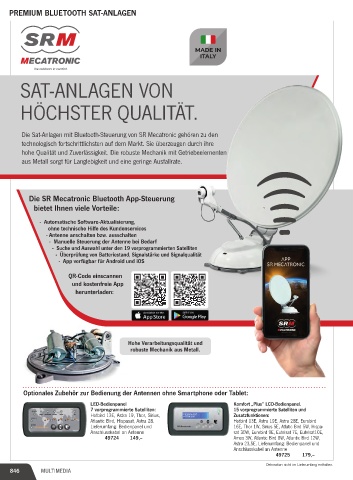 Die Sat-Anlagen mit Bluetooth-Steuerung von SR Mecatronic gehören zu den