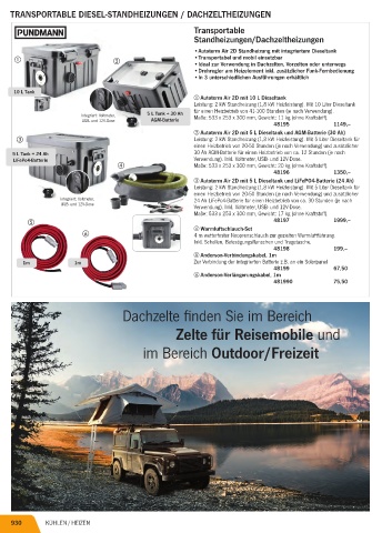Leistung: 2 kW Standheizung (1,8 kW Heizleistung). Mit 5 Liter Dieseltank für
