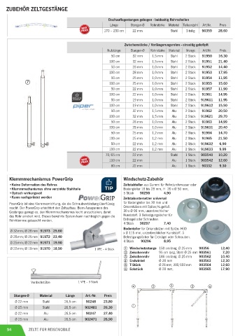 macht. Der PowerGrip erleichtert den Zeltaufbau. Beim Ausspannen des Orkanstützen mit Spitze/Kugelfuß.