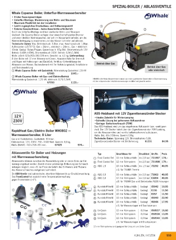 a Whale Expanse Boiler mit Gasbetrieb, Wärmeleistung Gasbetrieb:1,35 kW oder elektrisch
