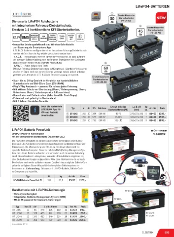 Bordbatterie mit LiFePO4-Technologie B E S T E MT LI 180