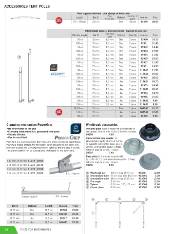 PowerGrip makes pitching the tent easier. When unclamping the boom, it is ne supports with tip/ball base. 30 x Ø